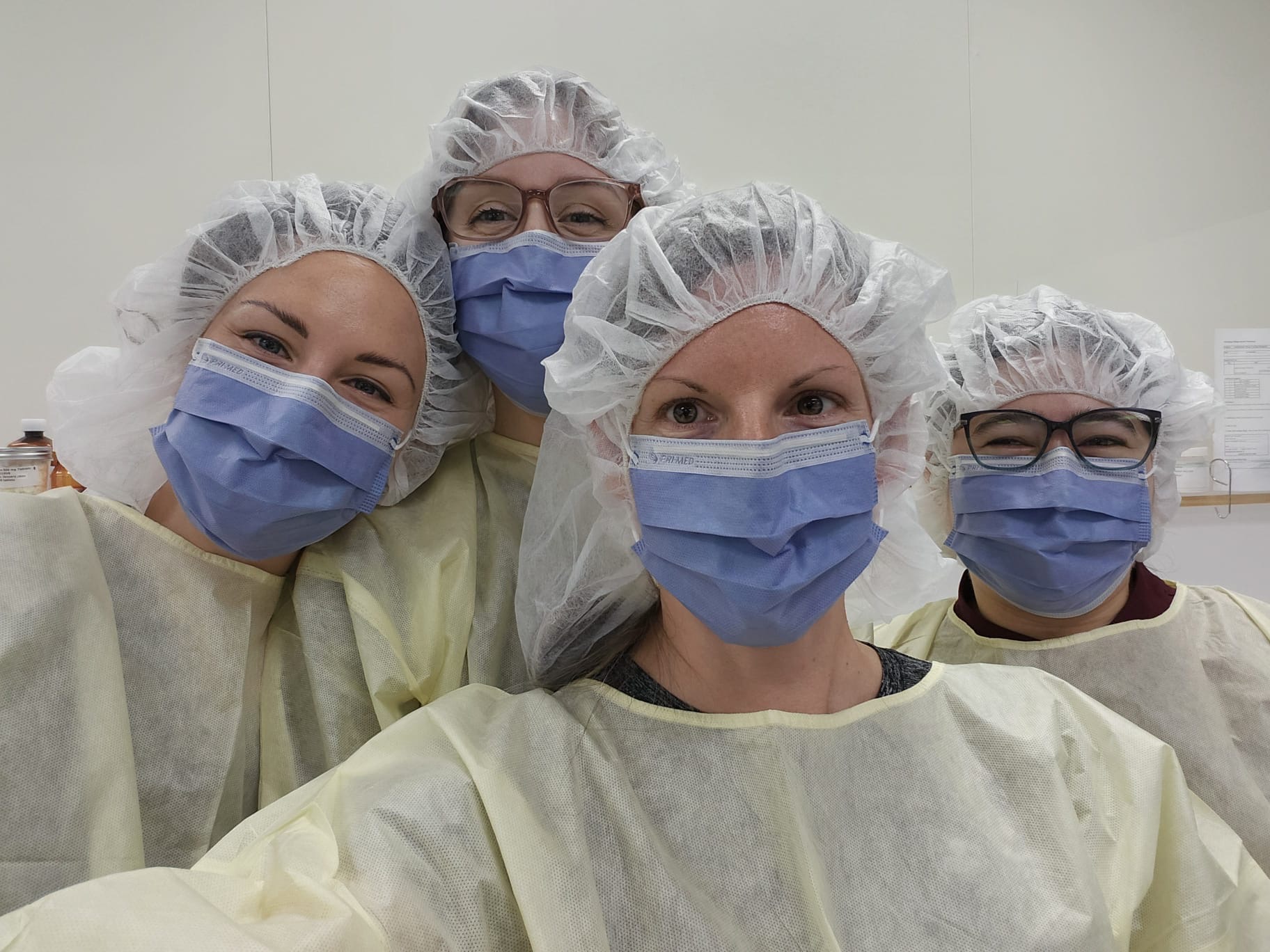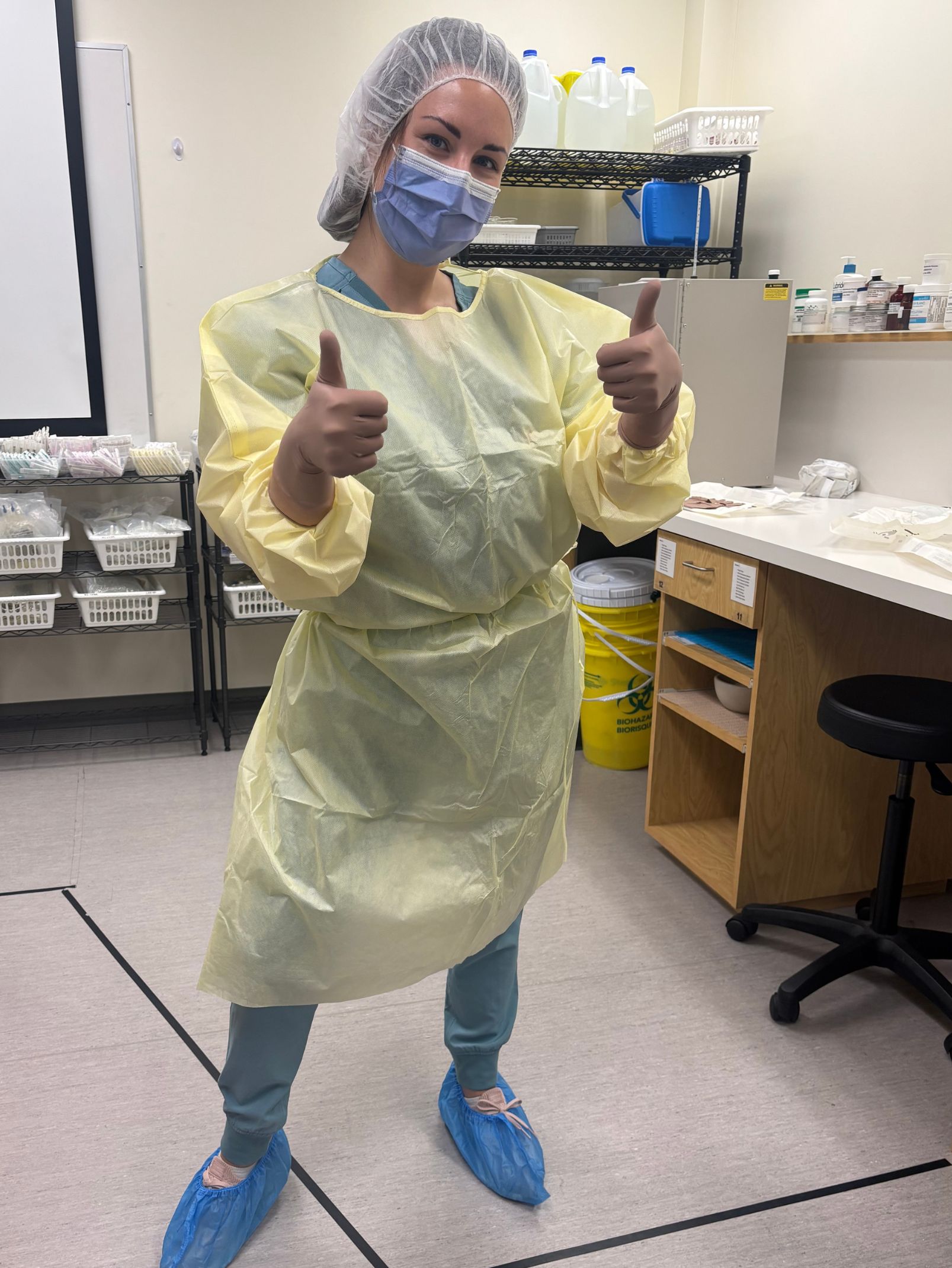 Next came the Hospital Operations and Dispensing Lab, which was new territory for everyone. Like the Community portion, it included three blocks, but this time we learned hospital order entry software (Meditech), sterile compounding, and daily hospital operations. I’ll never forget our first sterile compounding session: aseptic handwashing and garbing. At first, I didn’t even realize the gowns had sleeves, and I had two flopping at my sides (rookie mistake)! We practiced manipulating syringes, needles, glass ampoules, and IV bags — all without a single mishap. This quickly became my favourite lab, as I was able to apply my previous science background to aseptic procedures.